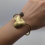 Sublimez votre poignet avec ce bracelet jonc ajustable au design unique et intemporel. Fabriqué avec une finition en laiton martelé à la main, il arbore un cœur généreux à la texture délicate qui capte la lumière sous tous les angles.