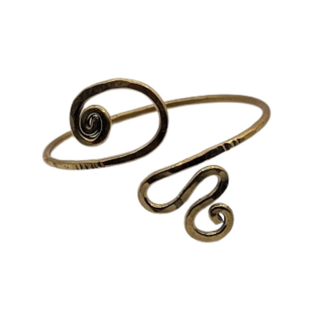 Laissez-vous séduire par l’élégance intemporelle de ce bracelet jonc artisanal. Conçu en laiton martelé à la main, ce bijou se distingue par ses courbes fluides et ses motifs en spirale inspirés des symboles anciens de renouveau et d’énergie.