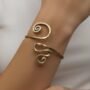 Sa structure ouverte et ajustable permet de le porter confortablement au poignet ou plus haut sur l’avant-bras pour un look résolument bohème-chic. Chaque pièce capte la lumière avec éclat grâce à sa finition dorée texturée, faisant de ce bracelet l’accessoire parfait pour sublimer une tenue de jour comme de soirée.